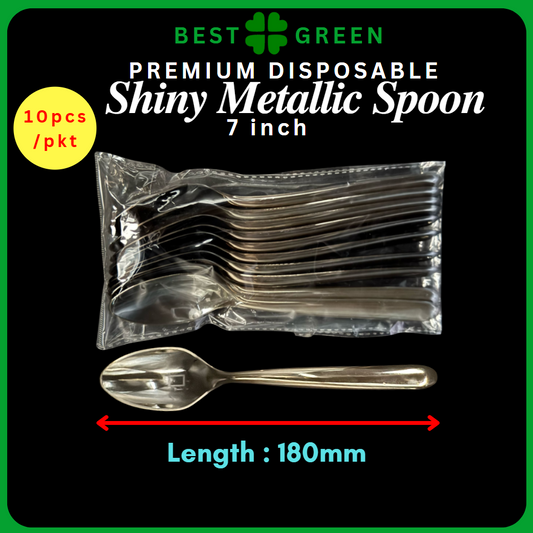 ✅SG READY STOCK - Shiny Metallic Plastic Disposable Cutlery Spoon Fork Knife Partyware [10Pcs/50Pcs]