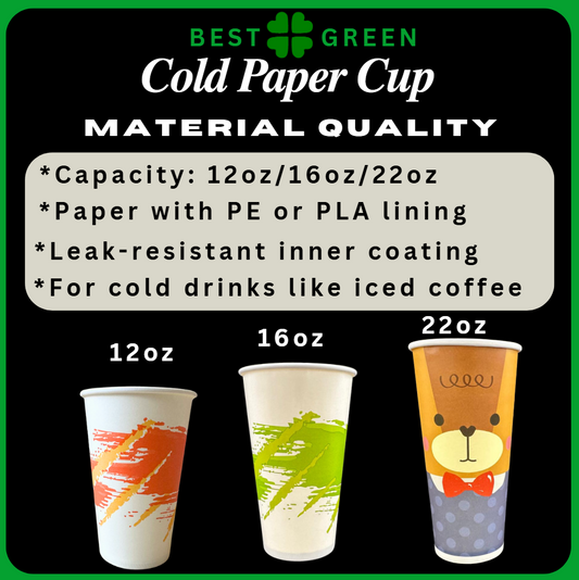 ✅SG READY STOCK [50pcs/pkt] 12oz/ 16oz / 22oz Cold Paper Cup / Lids / Green and Clear Straw