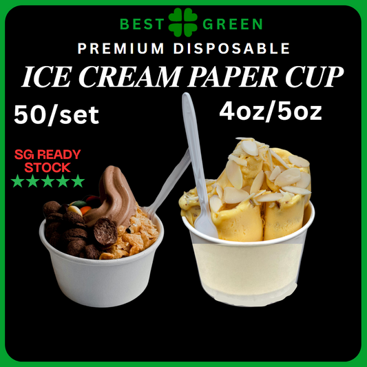 ✅SG READY STOCK | [50pcs/pkt] 4oz/5oz Paper Ice Cream Cup With Lids