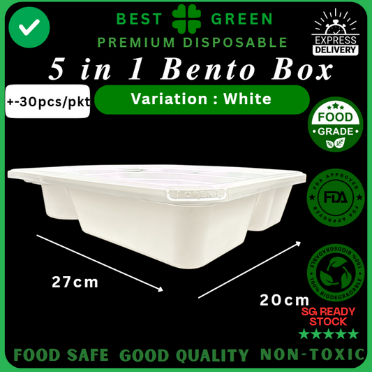 5-in-1 Bento Box – Premium Disposable Food Container (White)